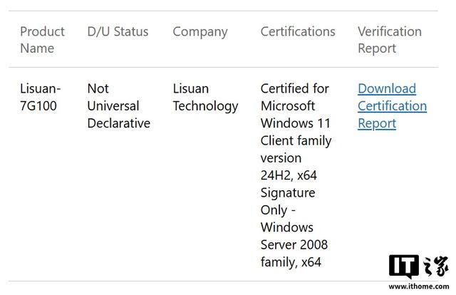 IT之家 4 月 26 日消息,据微软官网数据,砺算科技 7G100 现已通过微软 WHQL 认证。成为国内首家、全球第四家通过此认证的 GPU 公司。